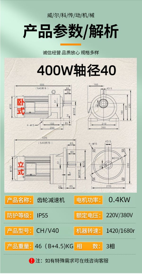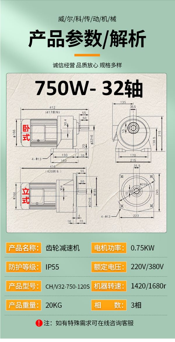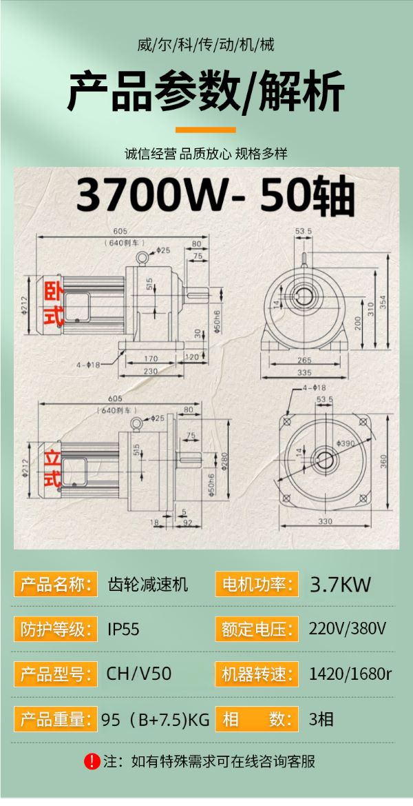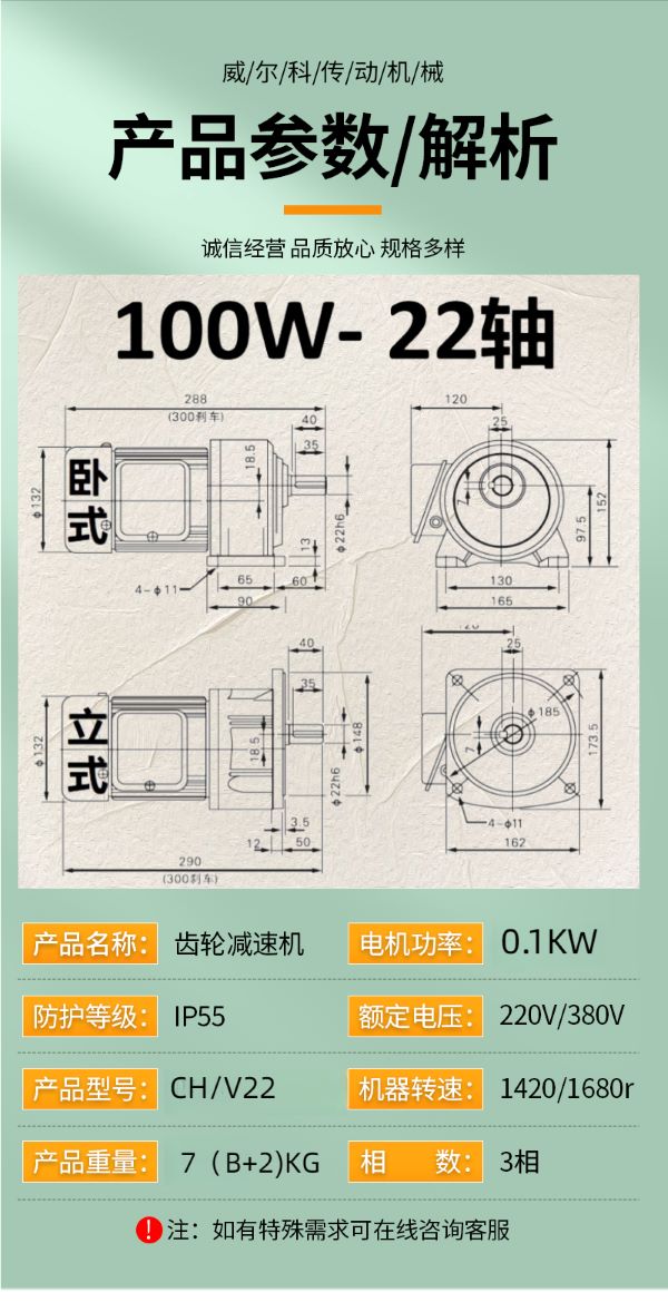 功率有: 100W(0.1KW減速機)、200W(0.2KW減速機)、400W(0.4KW減速機)、750W(0.75KW減速機)、1500W(1.5KW減速機)、2200W(2.2KW減速機)、3700W(3.7KW減速機)......